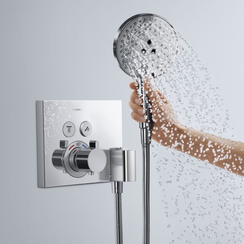 Dieses Unterputz-Thermostat für 2 Verbraucher aus dem Traditionsunternehmen Hansgrohe wird Ihre Dusche noch komfortabler machen.