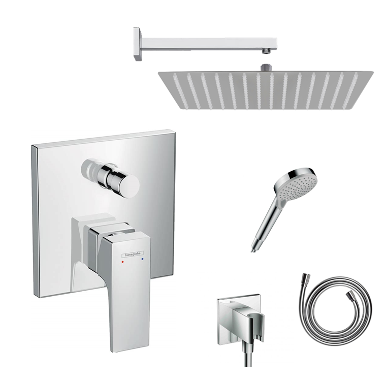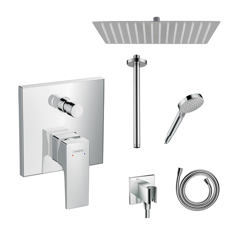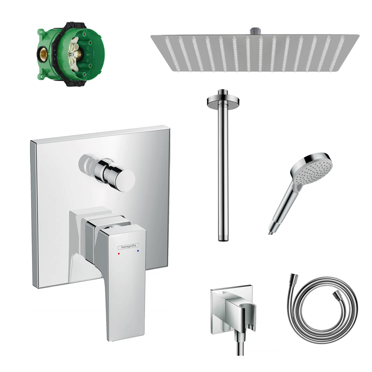 Hansgrohe Ecostat Square concealed shower set with ceiling or wall connection and 2-in-1 hand shower holder including connection elbow