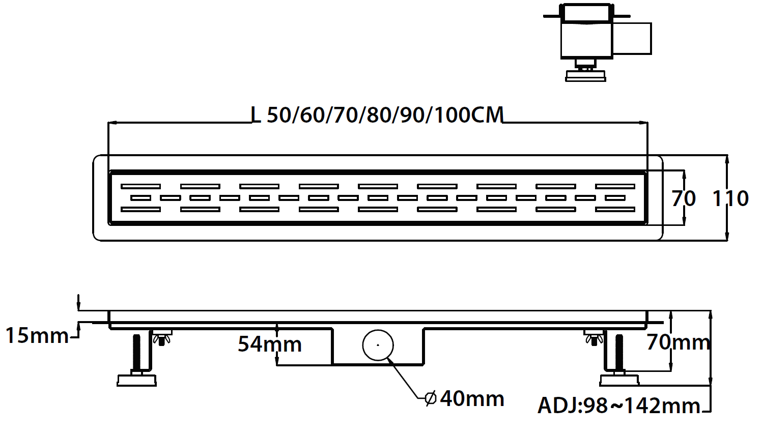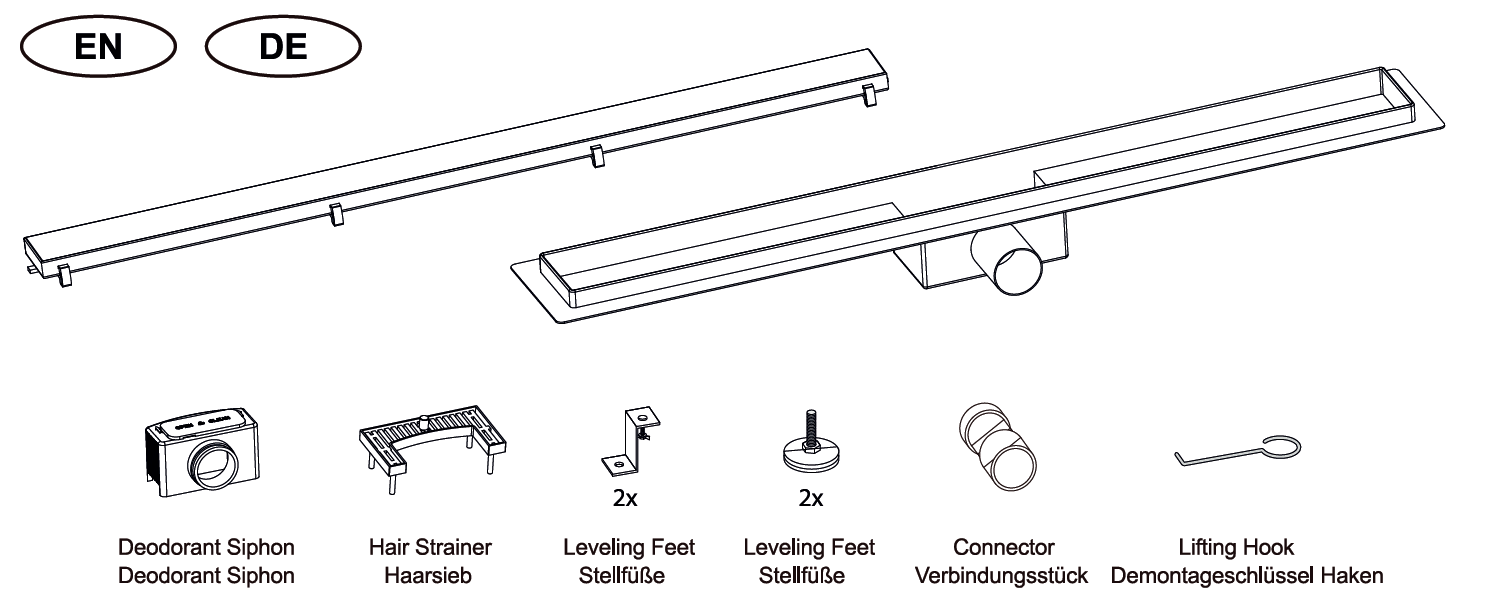 The drain siphon is 6.7 cm deep and removable. Easy to clean and rinse. The channels have a drainage speed of up to 30 liters per minute and can ensure clean drainage of the wastewater.