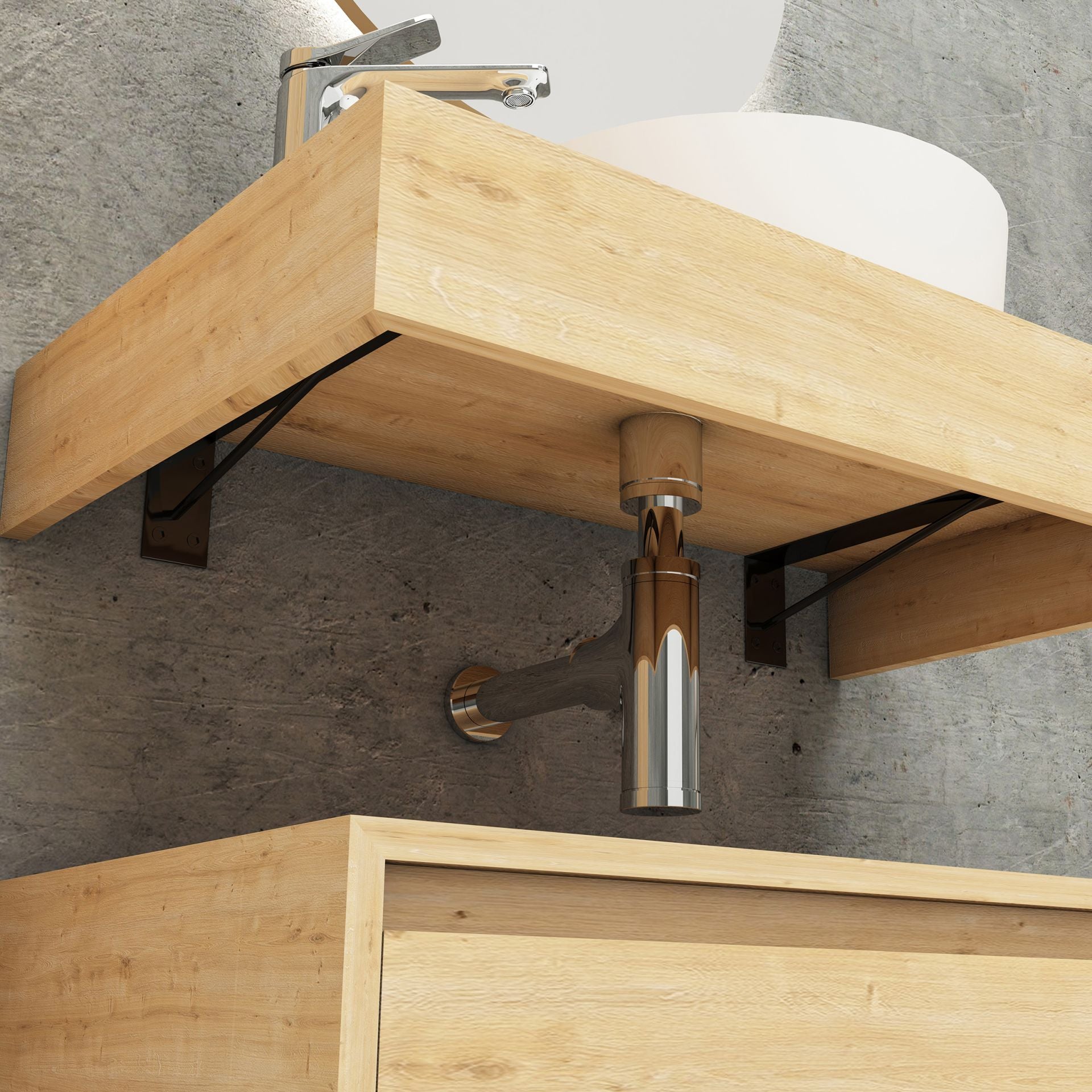 Dank der Verwendung von hochwertigem MDF ist der Waschtischunterschrank besonders langlebig und pflegeleicht. Die minimalistische Gestaltung sorgt für ein modernes, zeitloses Aussehen, das sich in jedes Badezimmer einfügt. Die großzügigen Ablageflächen und der Stauraum bieten ausreichend Platz für Ihre Badezimmerutensilien.