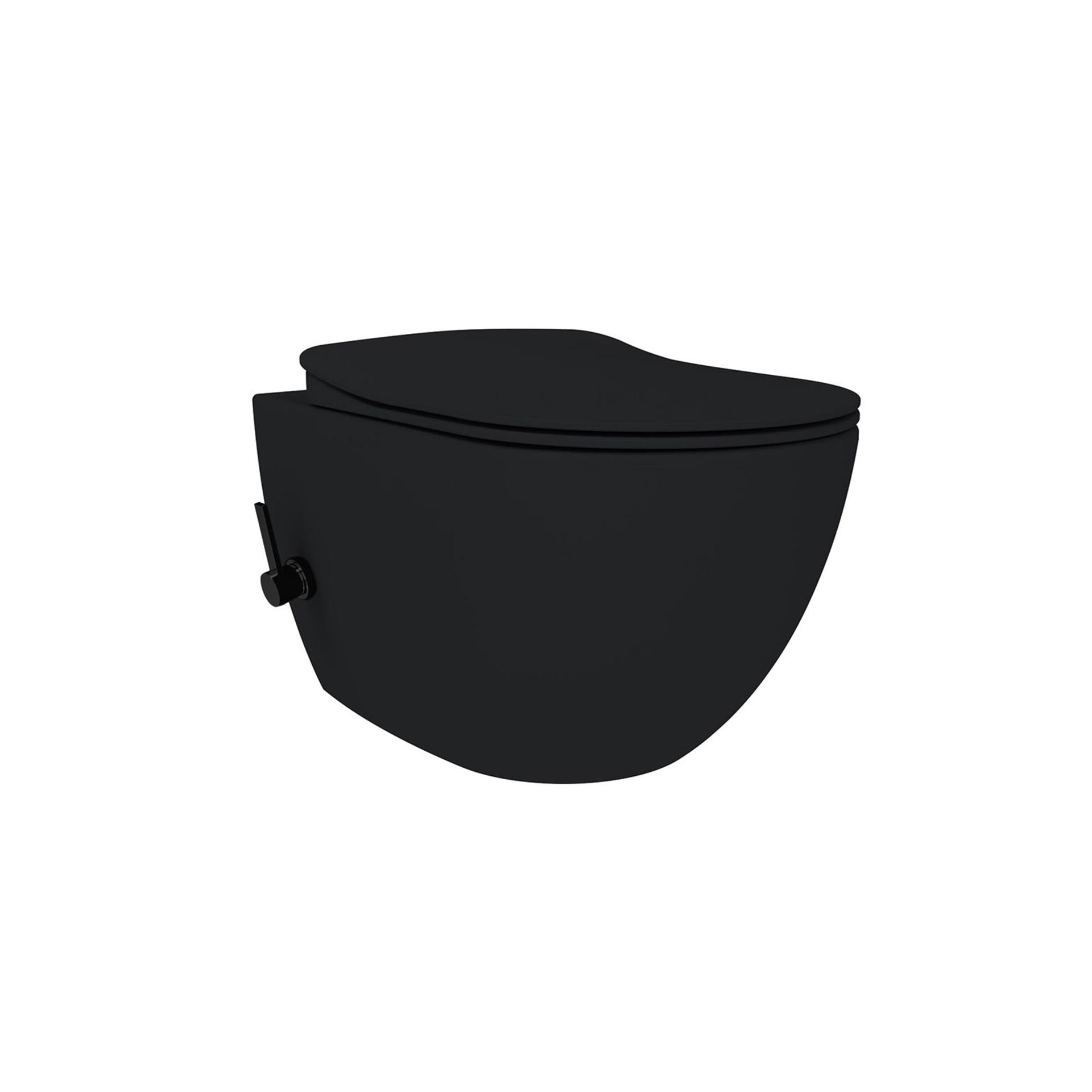 Oase Design Spülrandloses Tahret Bidet Wand-WC inkl. Armatur & Sitz mit Absenkautomatik schwarz matt